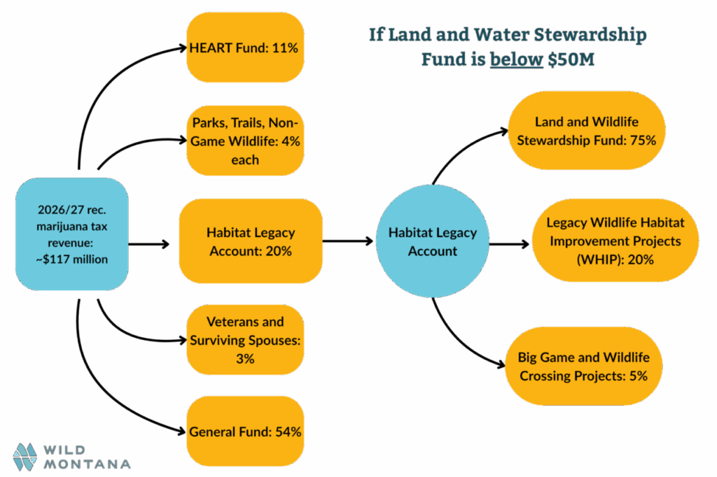 It all starts when the state collects recreational marijuana tax revenue. Montana charges a 20% tax on recreational marijuana sales, which is predicted to add up to about $117 million in the 2027 biennium (the two-year period from 2026-27).